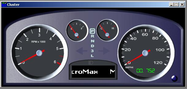 The Mx‑VDev HMI panel offers a simple approach to creating a PC-based animation of the graphic interface to your controller (such as an instrument cluster, center-stack display, or navigation system). Input can be accepted by clicking active components on the panel and outputs such as gauges and tell-tales are displayed and changed as tests are run. The HMI Panel active components can be linked to any stimulus or response Signals that are available in the Signal Dictionary.